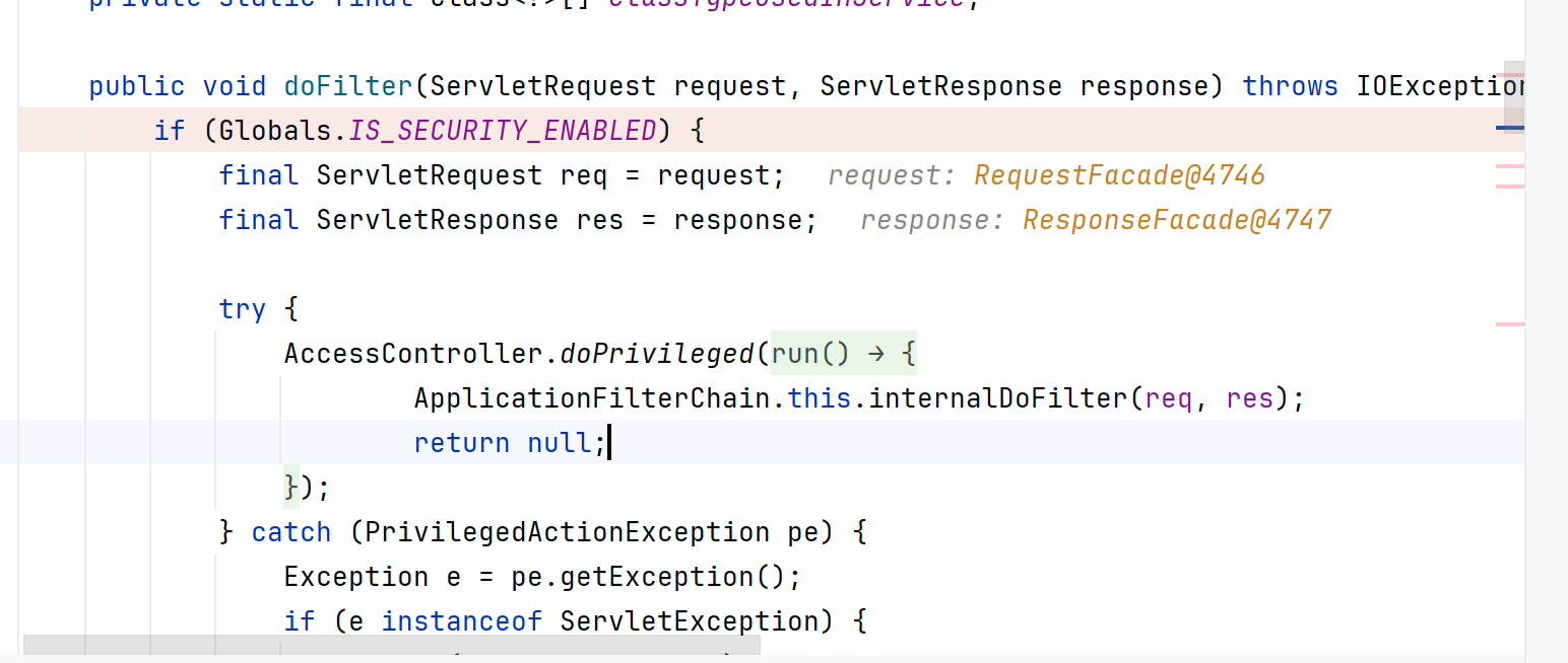走到Globals.IS_SECURITY_ENABLED,进入internalDoFilter