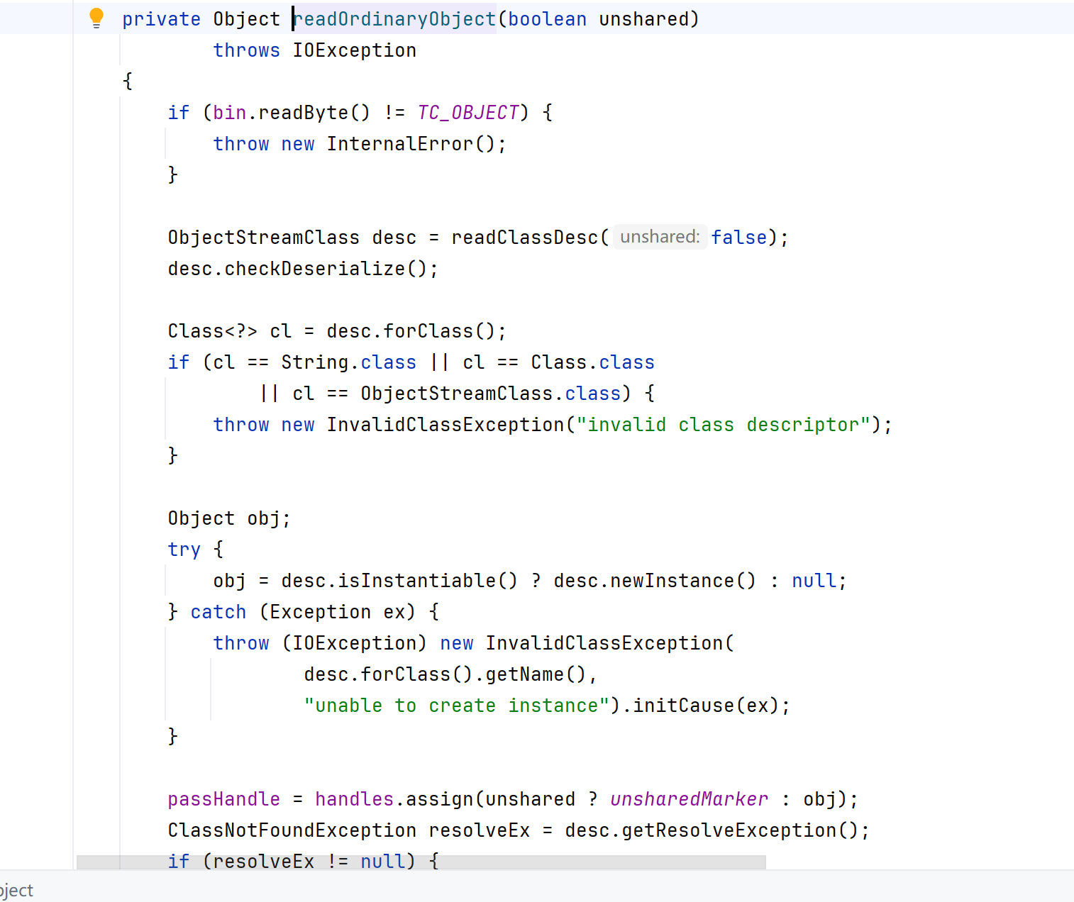 case TC_OBJECT: return checkResolve(readOrdinaryObject(unshared));